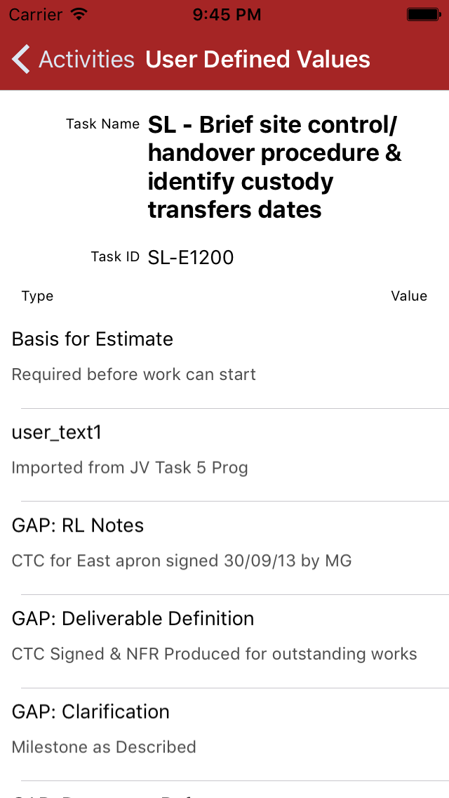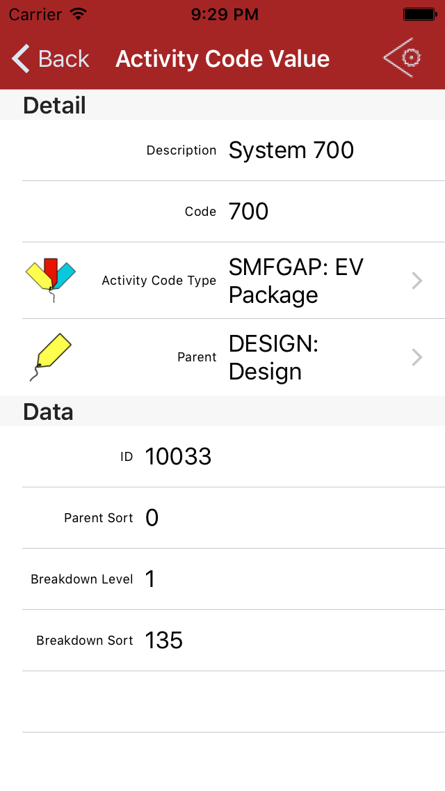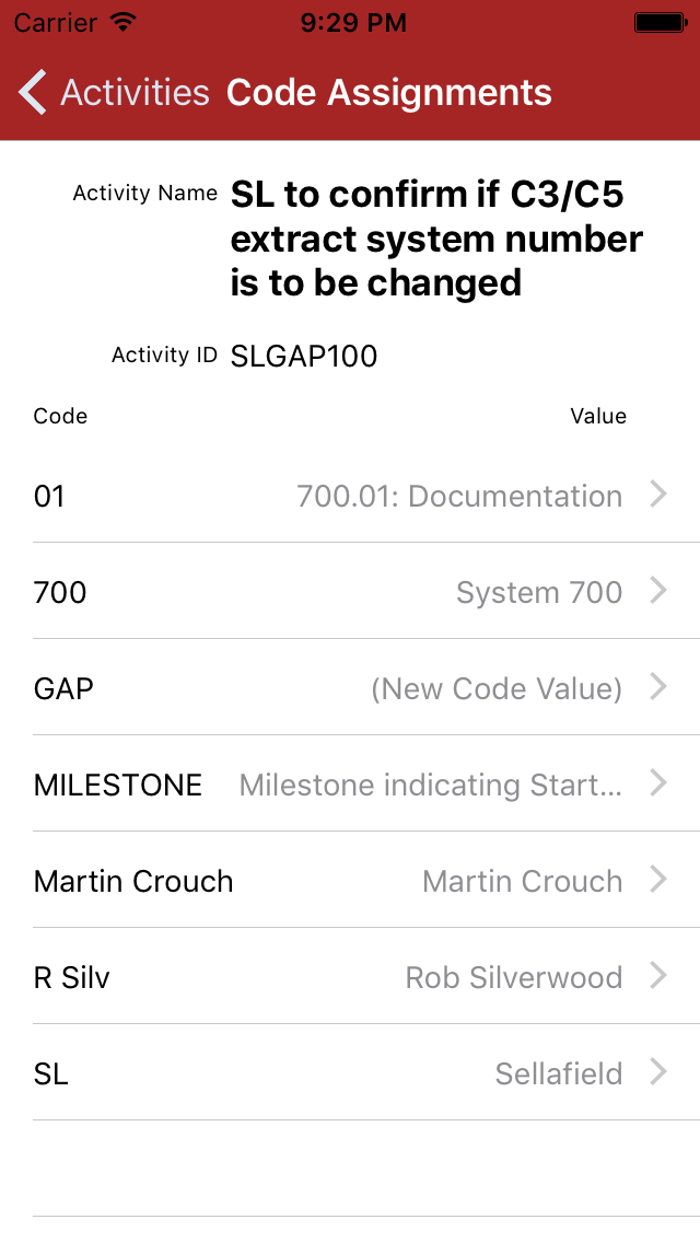 Tap to see further details on the activity code (see here)