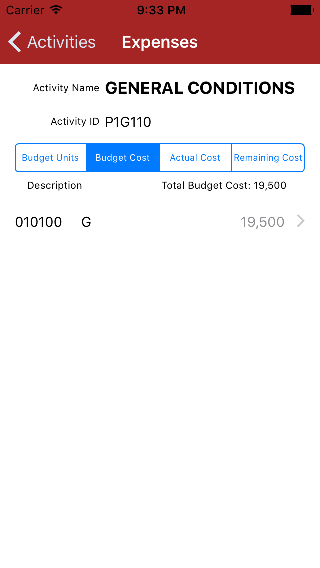 List expenses loaded on an activity