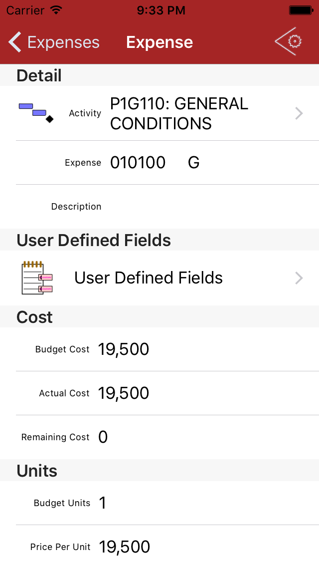Tap fields with a '>' disclosure indicator to see even more additional detail