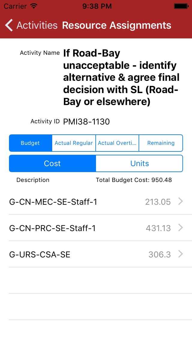 With xPect Schedule View you can tap an activity in the table, bar chart or network views to see more detail about that activity.