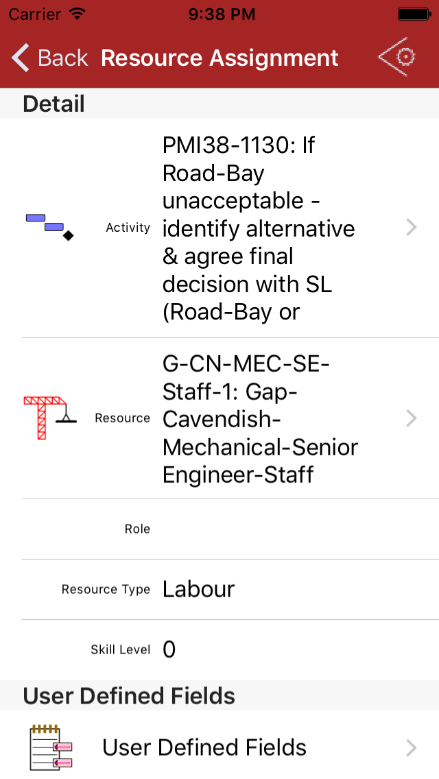 Tap to see detail of a resource assignment